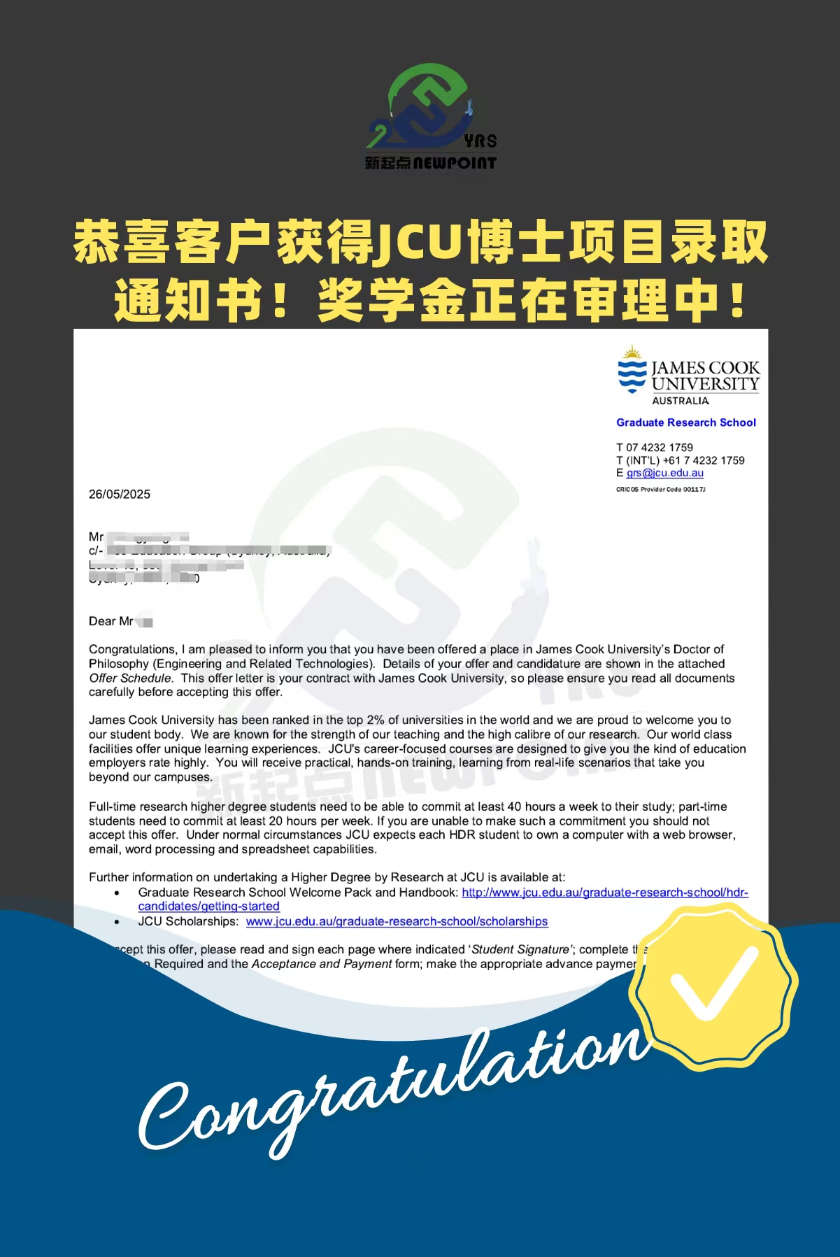恭喜**Chen获得JCU博士项目录取通知书!!