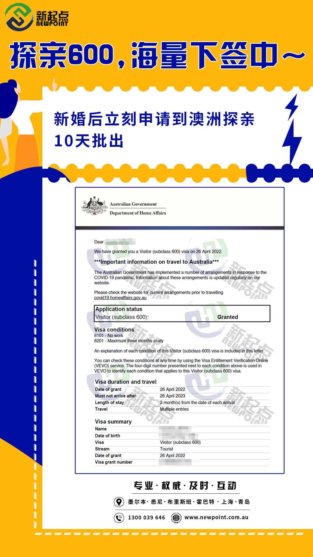 探亲600,海量下签中~新婚后立刻申请到澳洲探亲,10天批出