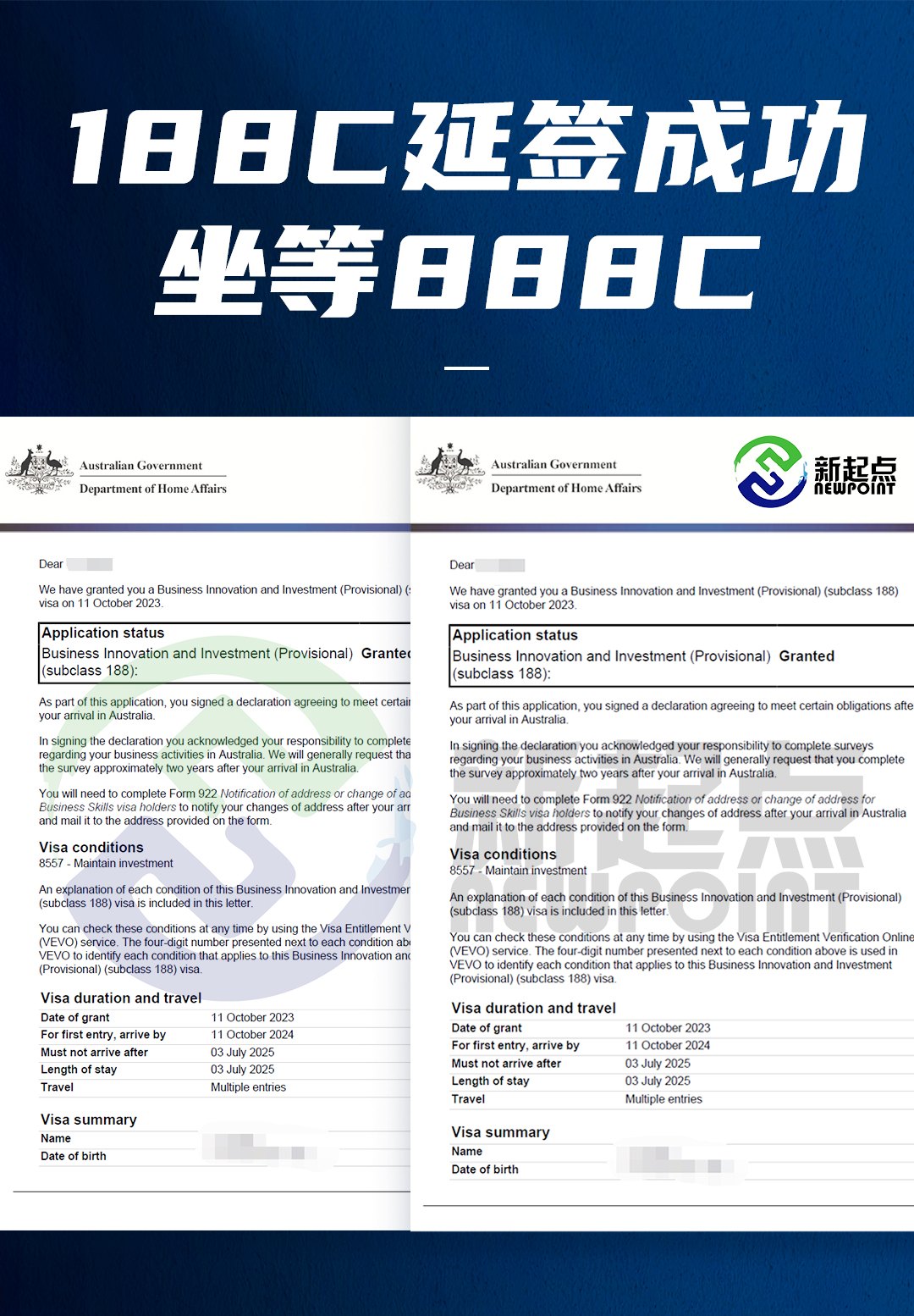 恭喜**Zhou获得188签证!