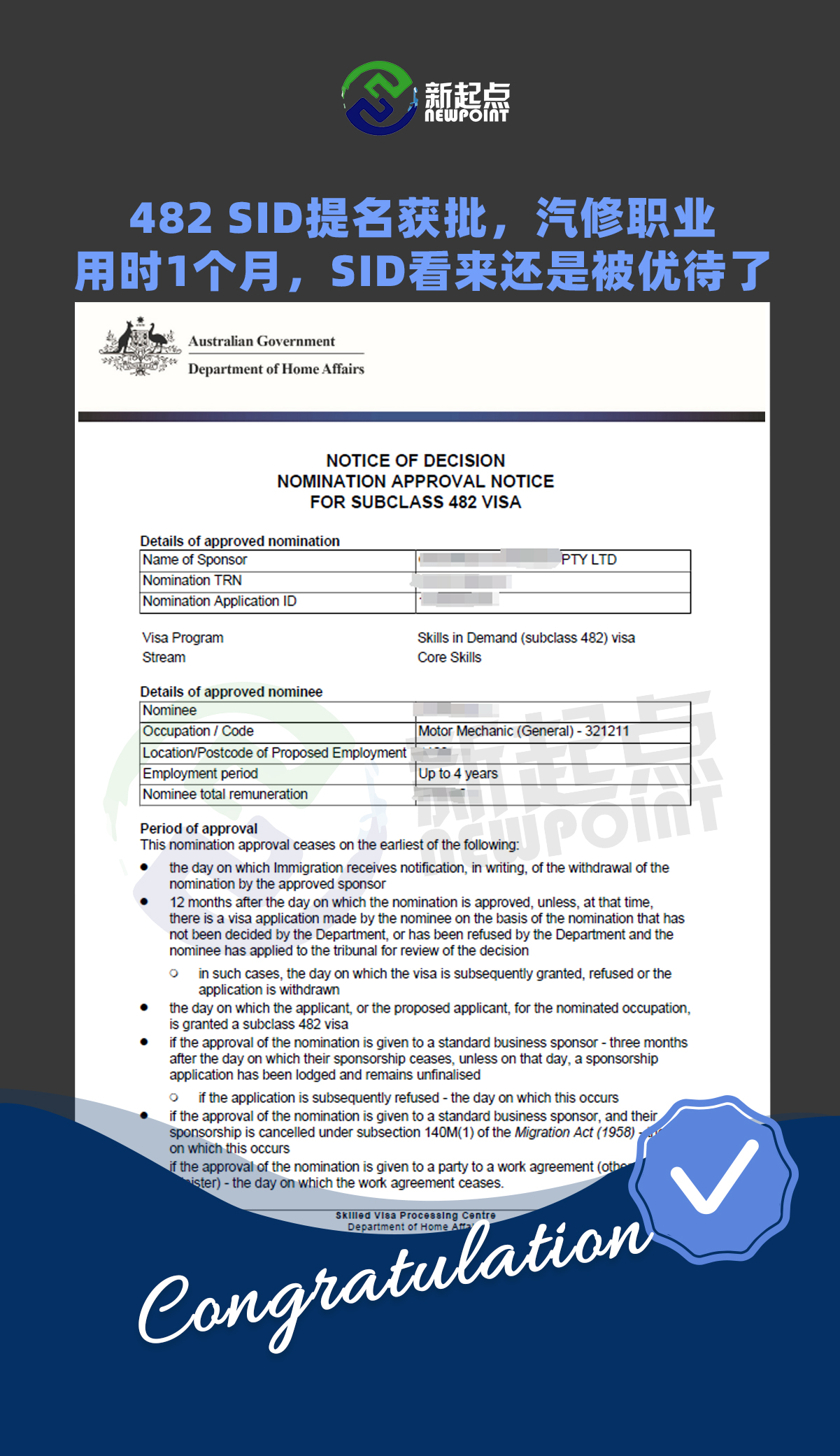 恭喜**Deng482 SID提名获批,汽修职业,用时1个月,SID看来还是被优待了!