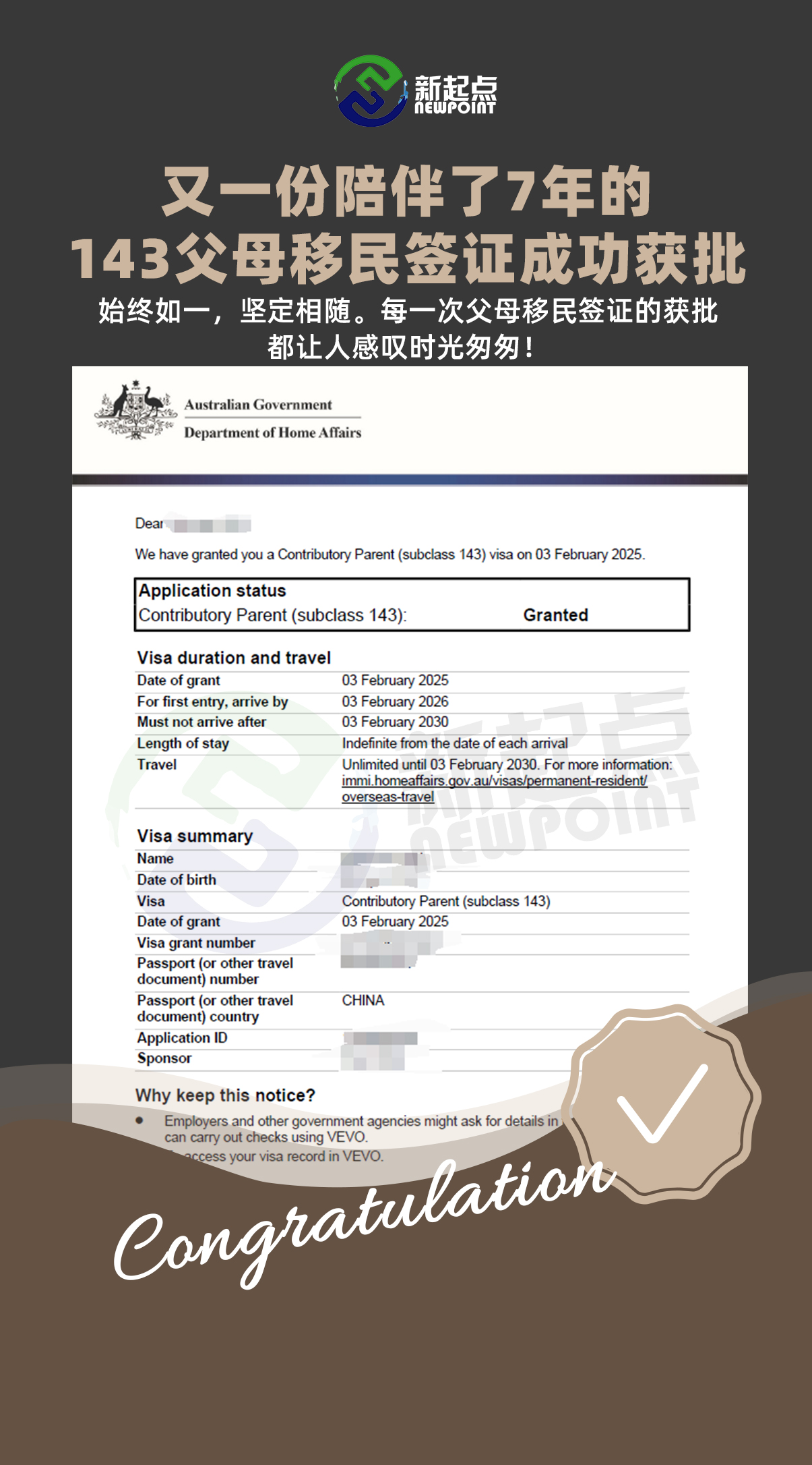 恭喜**Yang获得143签证!!