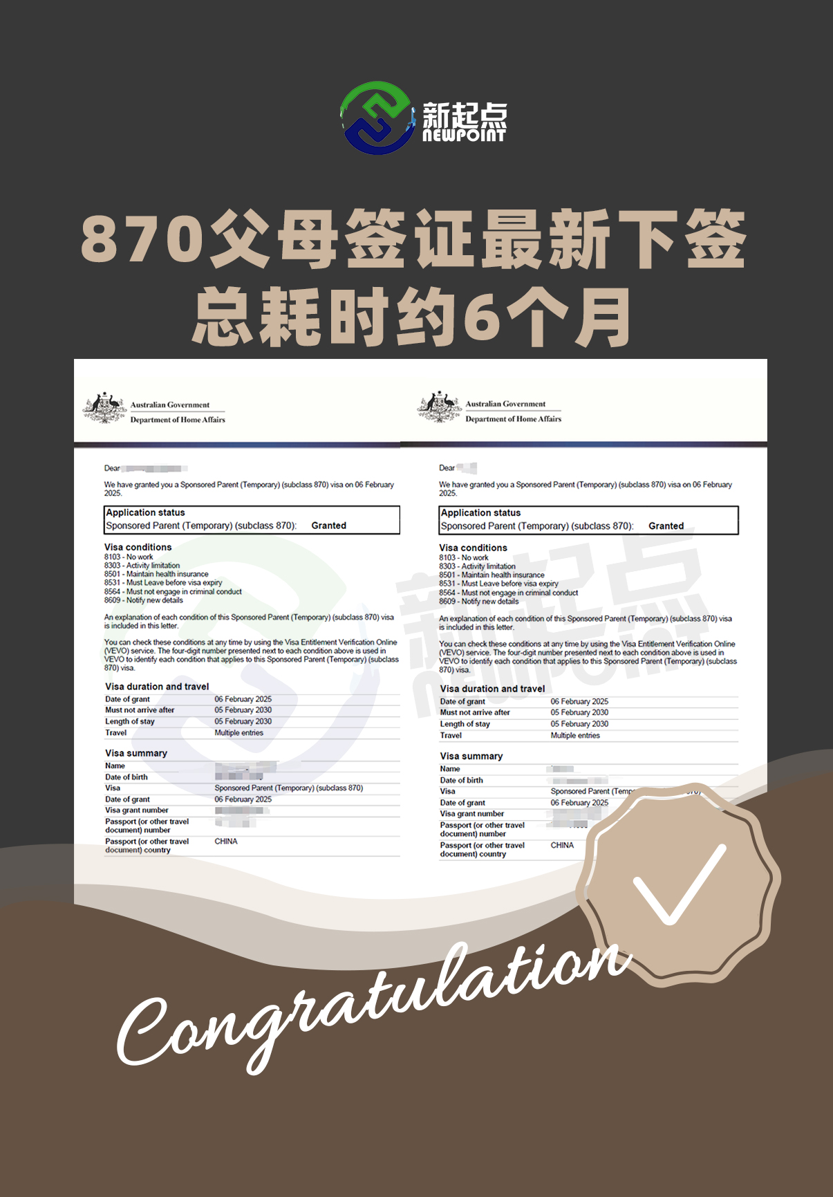 恭喜**Zhu获得870签证!!