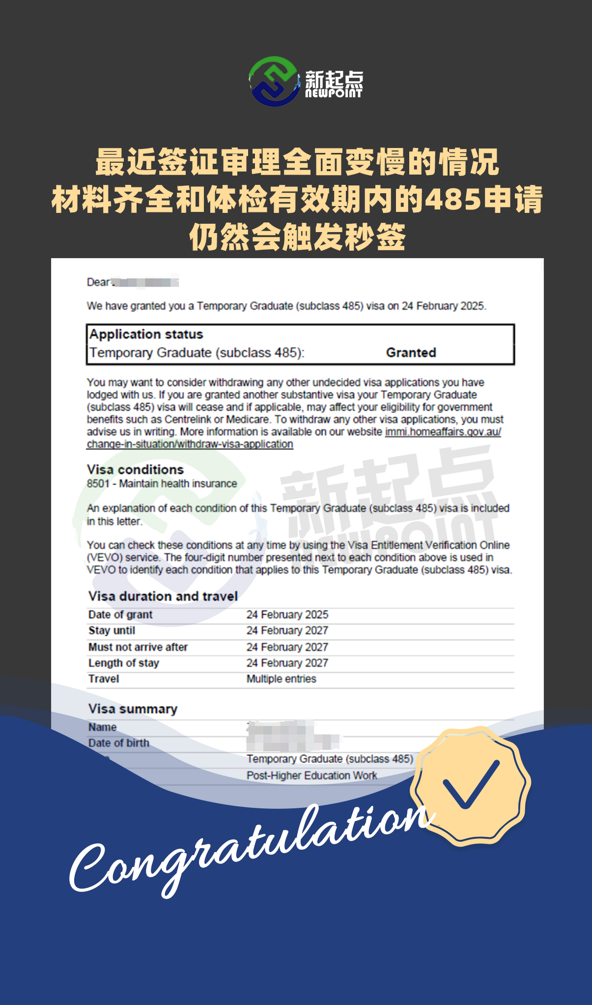 恭喜**Fu获得485签证!!