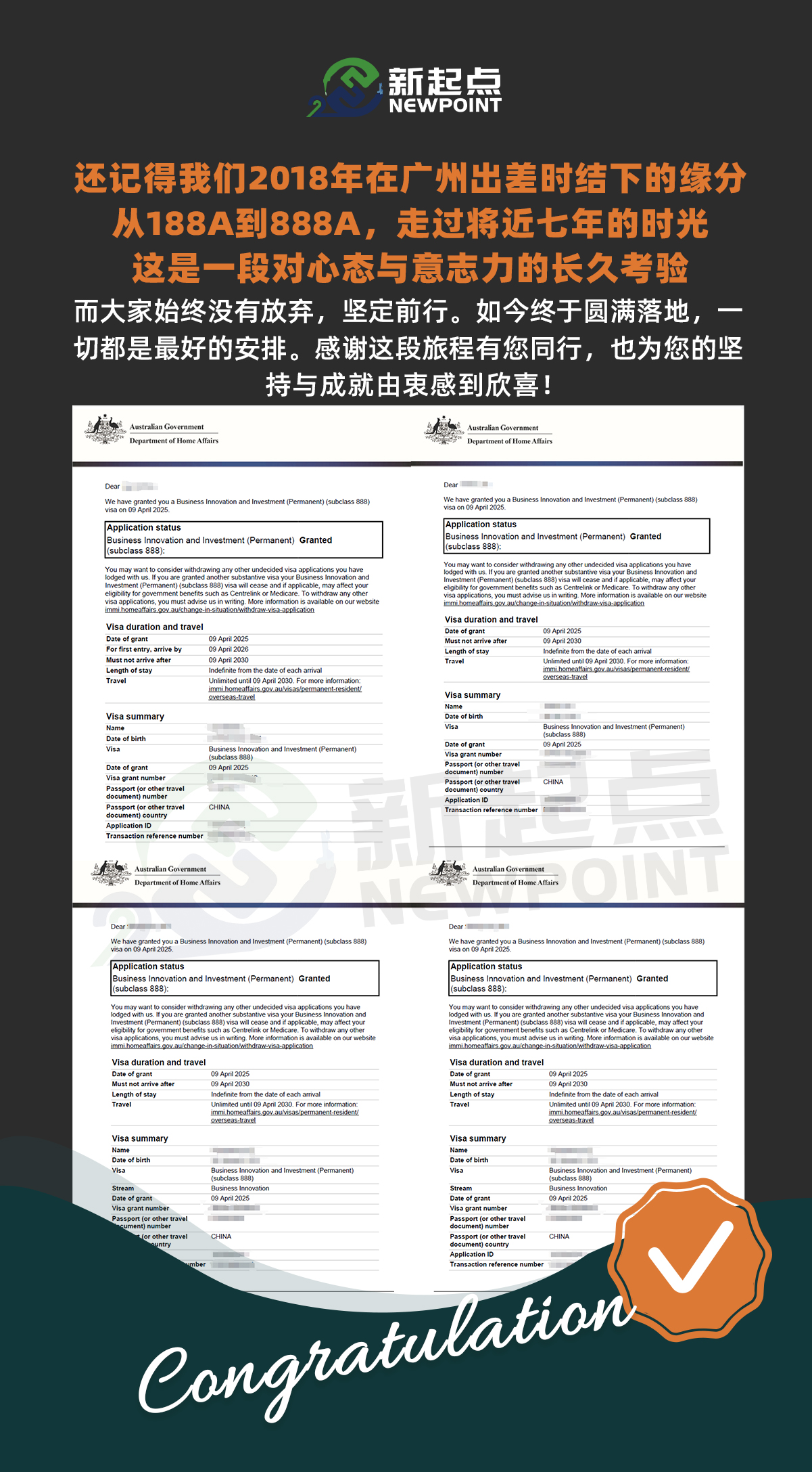 恭喜**Wang获得888签证!!一家四口终于圆满落地!