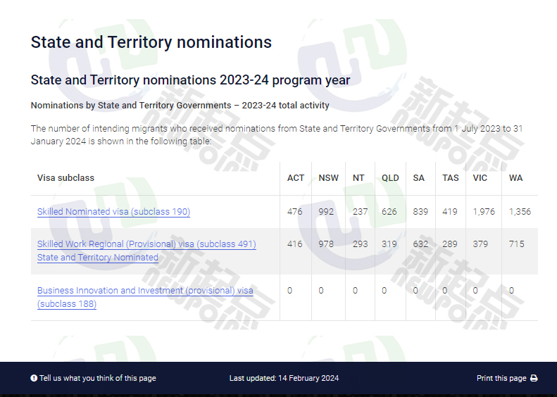Yesterday, the Immigration Department's official website updated the situation regarding invitations issued by each state, with data up to January 31, 2024. Due to limited quotas for this fiscal year, states are adopting a cautious approach to nominations.