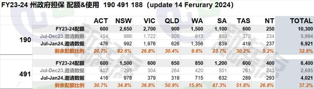 Western Australia (WA) closed its invitation process for this fiscal year on February 2nd due to the extensive invitations sent to applicants in the construction industry in previous rounds. With the current limited remaining quota, it is necessary to reserve quotas for pre-invited applicants. Northern Territory (NT) had even fewer allocations and closed applications early at the end of the 23rd fiscal year. Students in these two states must patiently wait for the start of the next fiscal year for new opportunities.