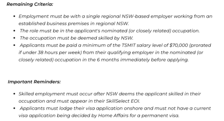 Starting from April 2, 2024, NSW 491 Pathway 1 has made significant changes to the work requirements in regional areas! If you have worked for at least 6 months in a regional area of NSW, you can now contact me to directly submit your applications! Just meet the following conditions: