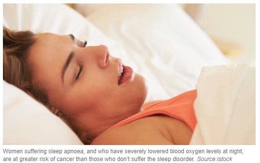 Women suffering sleep apnoea, and who had severely lowered blood oxygen levels at night, were at greater risk of cancer than those who didn’t suffer the sleep disorder, scientists in Greece discovered.