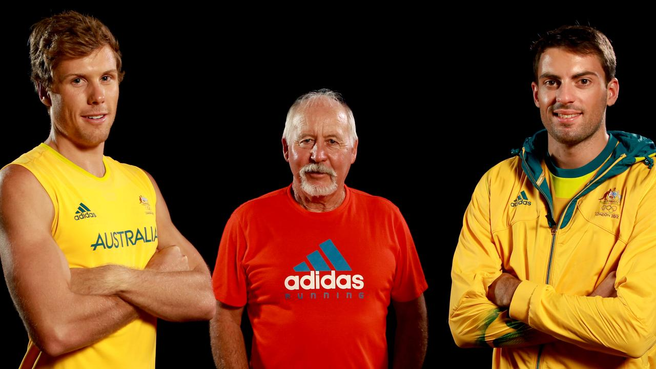 Henry Frayne and Mitchell Watt with Bourne ahead of the 2012 Olympics.