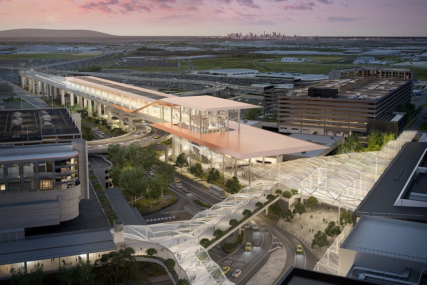The Victorian government's plans for the Melbourne Airport Rail Link include an above-ground station at the terminal.(Supplied: Victorian Government)