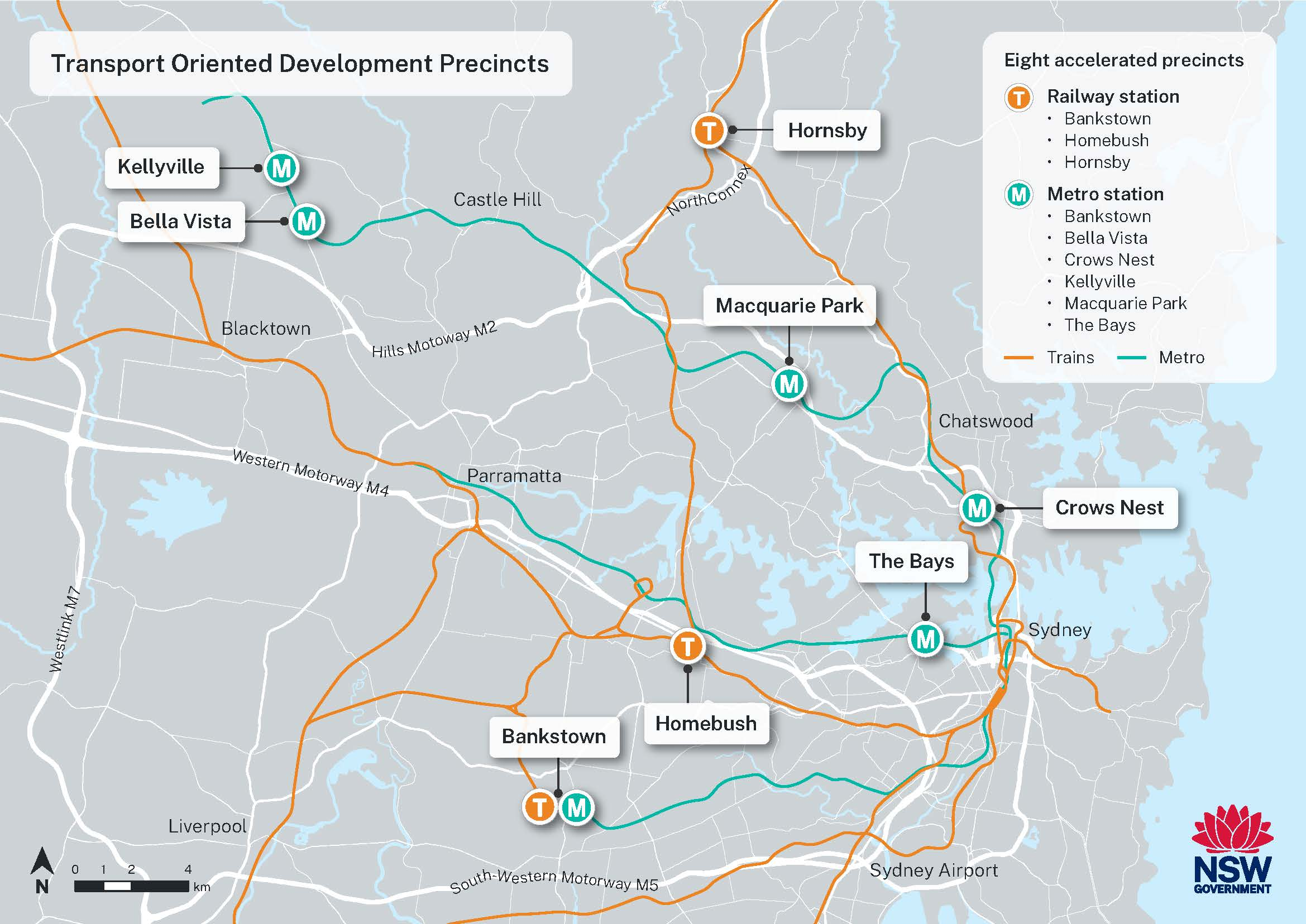 "The NSW government will master plan and rezone the precincts by November 2024 to deliver up to 45,000 new and affordable homes, within walking distance (1200m) of these key stations," the document said.