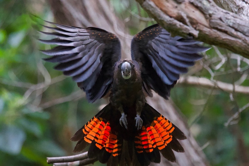 The glossy black cockatoo is listed as vulnerable and is estimated at around 10,000 birds in Australia.(Supplied: Spencer Hitchen)