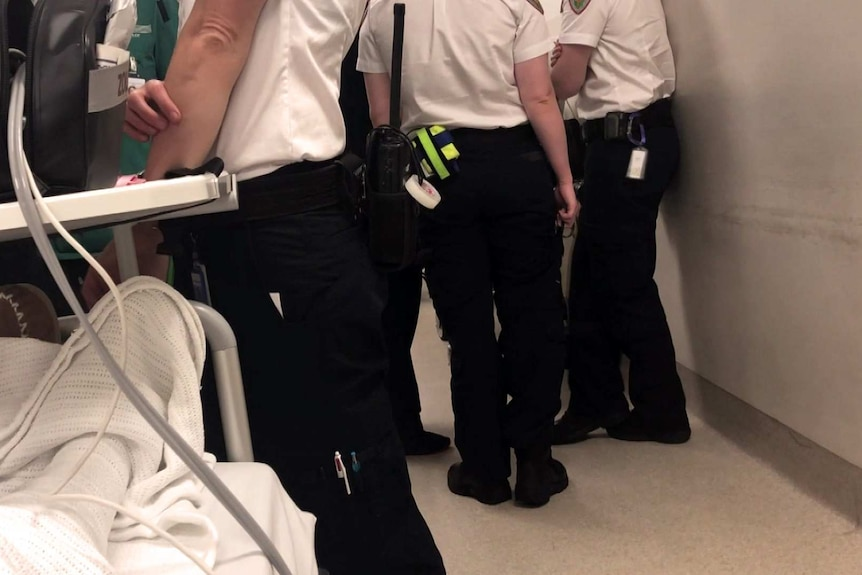 He said patients with pneumonia were being kept in the ED, patients with dementia or acute mental health conditions remained with general patients, and elderly patients in delirious conditions were being "ramped" for up to 14 hours, while paramedics waited to transfer them into the care of the hospital.