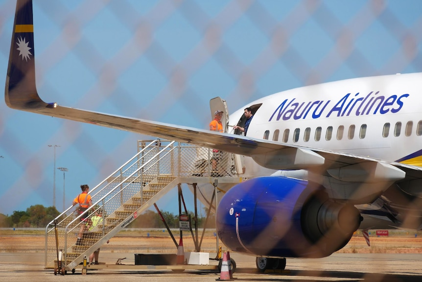 The Nauru Airlines plane arrived in Broome on Saturday morning.(ABC Kimberley: Rosanne Maloney)