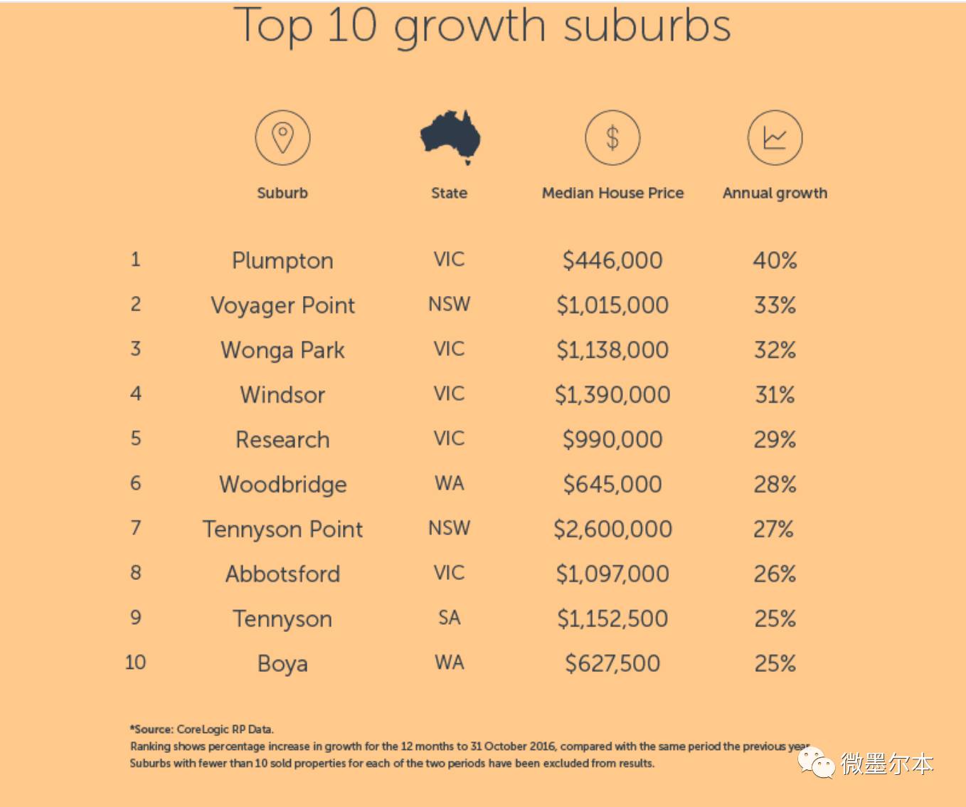 2016澳洲10大地产增值社区区,墨尔本增值40%领衔!