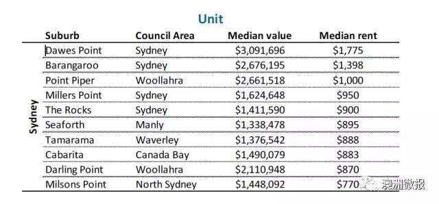 而悉尼Unit出租价格排行来看,最高达到了1775澳币!