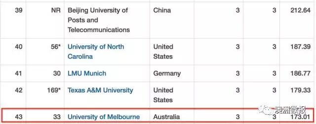下面,再来看看澳洲地区跻身世界前100名的是高等学府——墨尔本大学,位列43名,共授予CEO一共3名。