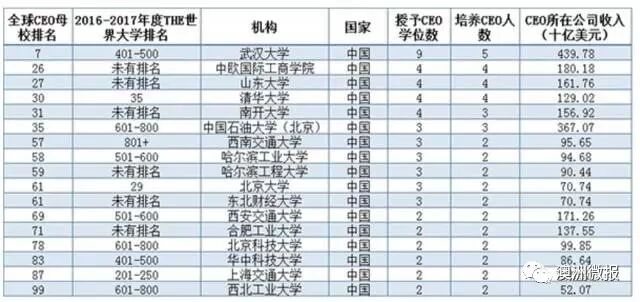 2017全球CEO高校排行!中国超澳洲,排名第一的居然是...