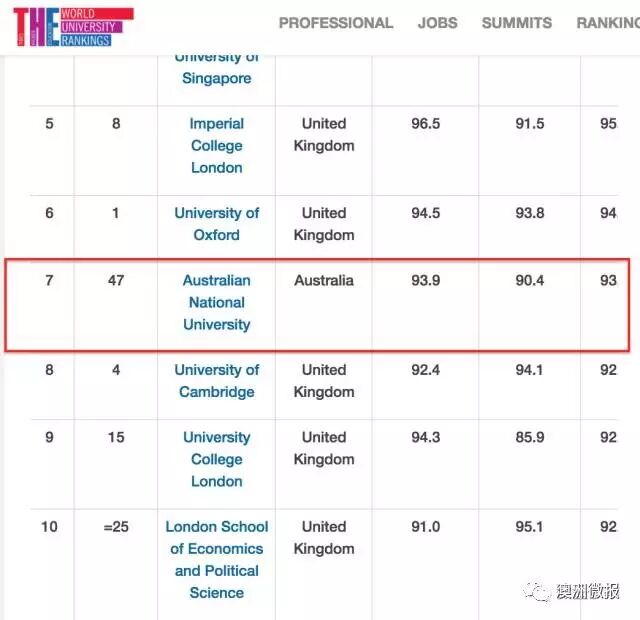 在前十中,澳洲国立大学以93.9%的毕业生就业率、跻身世界第7,而其在世界大学的排名也在47位,在国立前后的分别为第六名牛津大学和第八名剑桥大学!
