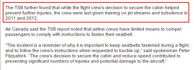 加拿大运输安全局(TSB)公布了最新的一份调查,详细的报导了该次航班遇险、造成21人受伤事件的始末。真相,好生让人无语……