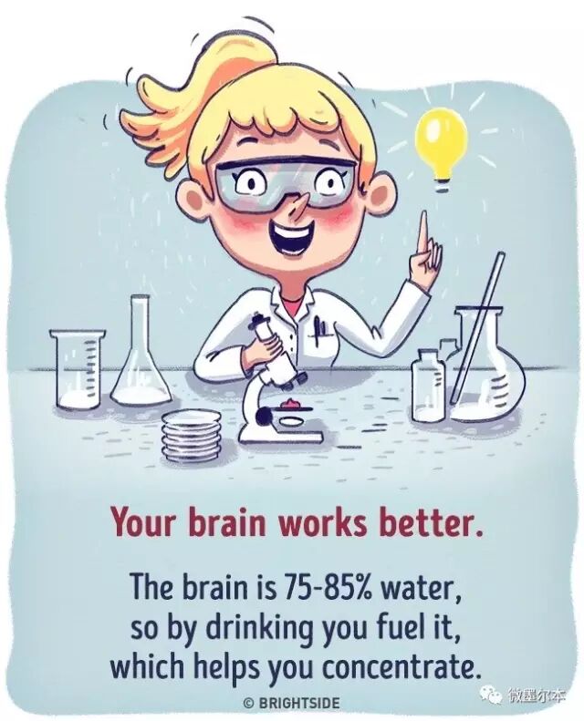 一位叫Chris Bailey的讲师,就研究了一个月如果把日常喝的饮料,都换成水,对我们的身体会有什么好处,并且用图片的形式表达了出来。