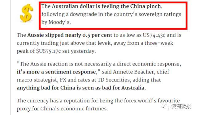 TD证券首席宏观战略家外汇和利率的Annette Beacher说表示,对中国的不利便是对澳大利亚的不利,澳元的反应不一定是直接的经济反应,更多的是情绪反应!