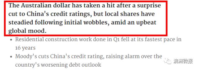 穆迪意外下调中国评级,澳元闻声下跌,跌矿石跟着暴跌..