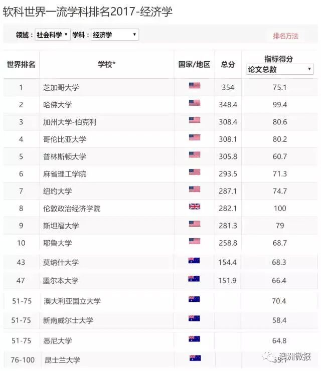在经济学这一学科,澳洲共有6所大学上榜,莫纳什大学以43的排名压过了墨尔本大学。