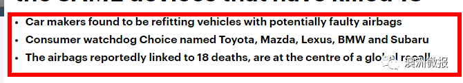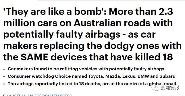 全澳史上规模最大,最紧急召回!230万司机受影响,至少18人因它死亡,180人受伤!宝马、本田丰田全中枪!