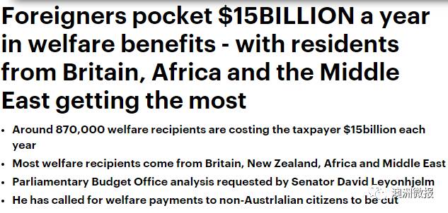 而澳洲联邦的自由党议员DavidLeyonhjelm甚至提议,非澳洲国民的居民福利,都应该统统削减掉!