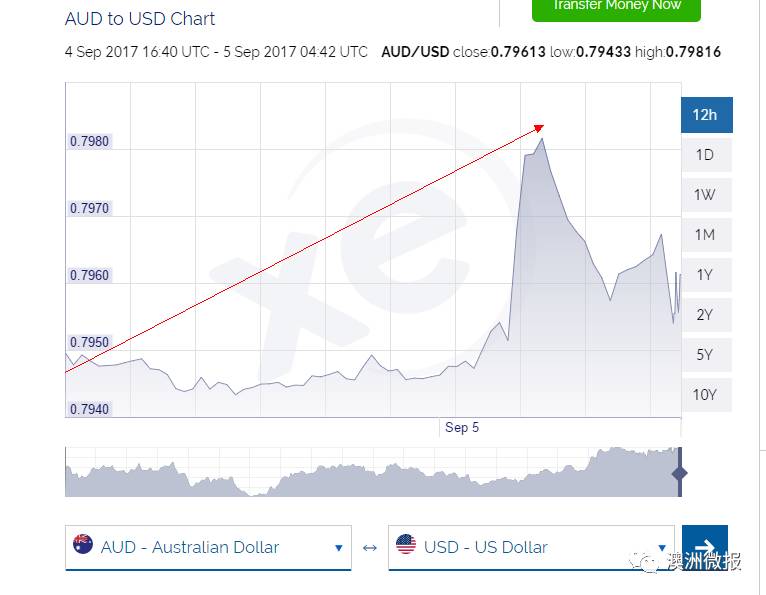 同时澳元兑换人民币汇率上升,收盘1:5.20347
