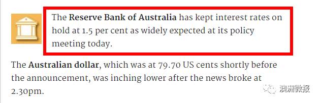 刚刚,澳央行(RBA)最新决议出炉,依然保持原有1.5的利率不变!
