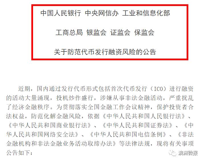 回到国内,昨天中国人民银行联合中央网信办、工业和信息化部、工商总局、银监会、证监会、保监会等六部门发布的《防范代币发行融资风险的公告》(下称《公告》)。