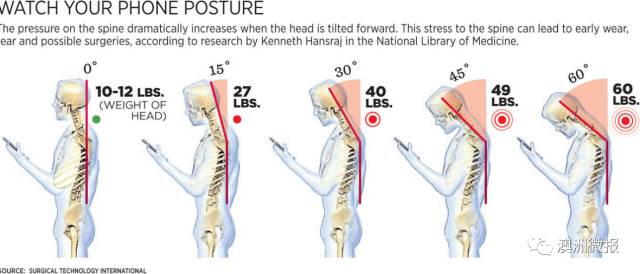 来自纽约的脊柱外科医生Kenneth Hansraj博士表示:“脊柱在不同程度向前弯曲时脊柱受力将会显着增加。”