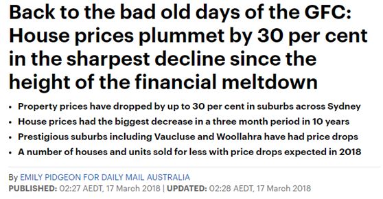 在新闻中,专家直接用GFC(全球金融危机,Global Financial Crisis)来描述悉尼目前遭遇的房价低谷。