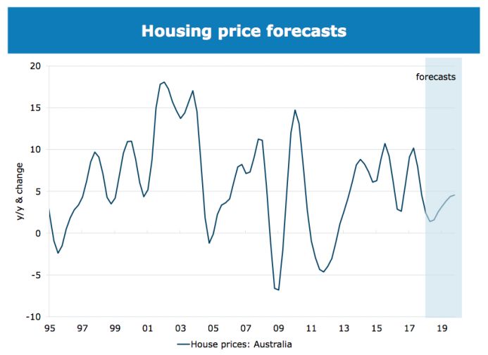 根据房产价格预测趋势图,澳新银行称,2019年房价将回升。