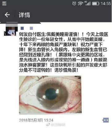 这名医生在朋友圈痛心疾首呼吁大家这些缺氧导致的并发症是不能逆转的,请珍惜自己的眼睛,不要乱戴美瞳!