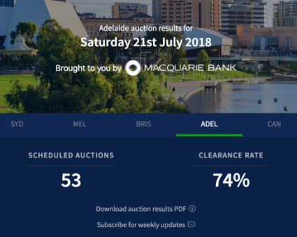 阿德莱德:清盘率74%,出售总价:$12,090,500 中位价:$625,000