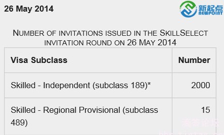 1. 2014年5月26号,共选取2015份EOI(不含州担保),包括189独立技术移民2000份和 489偏远地区亲属担保技术移民15份。