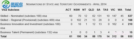 5. 2014年4月份,澳大利亚各州发出的州担保邀请数量详情请见下表格: