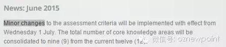 此次职业评估的变化在刚刚出现时,的确引起不小的轰动,6月4日和5日两天,新起点的电话都快爆棚。经过小编和新起点团队仔细分析后发现,这此变动并不像众多媒体报道的那样影响严重,就连CPA官网也仅仅是用‘Minor change’来描述(见下图)。绝大部分Accounting专业的同学们大可放轻松,你们都不会受到影响。对于那一小部分就读和Accounting相关专业的同学们(如Marketing,Finance或者Banking等),请仔细查看所修科目,Commercial law,Corporations Law, Economics这3门课程很容易就被漏掉。