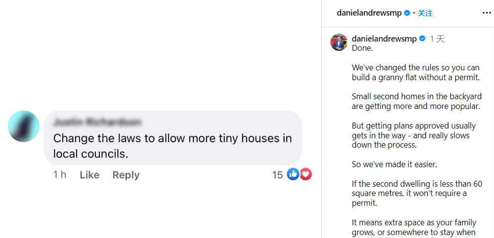 这是州长Daniel Andrews在最新的未来10年住房计划中做出的一项改变,主要针对的就是后院的小型建筑。