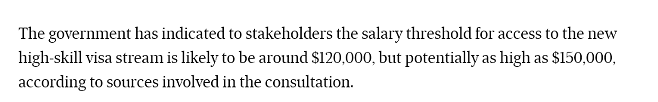 1. High-skill Tier高收入高技能群体: 最低年薪或定在12万澳元(最低不会低于9.8万),这类群体有望可以豁免LMT劳动力市场测试以及职业清单的限制。并且享有优先审理的福利。