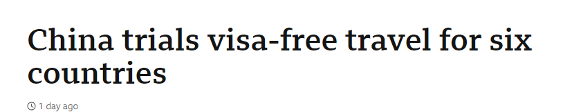 这个新闻也直接刷屏了中外媒体,毕竟这也算是中国进一步放宽了国境限制,让更多国家公民可以更便捷进入中国旅行或者商务访问。