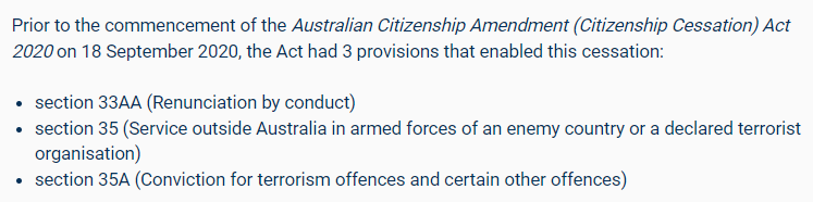 就像上面所说的, 踩到了澳洲法律的红线,参与一些跟恐怖主义有关行为,或者是其他一些重大犯罪行为,都有可能成为被取消公民身份的原因。