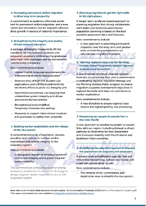该计划包含25项“让移民为国家服务”的新承诺,此前马丁·帕金森博士进行了一项审查,发现澳大利亚的移民计划“不符合目的”。