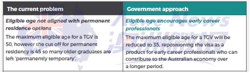 由于超过50%的毕业生签证持有人的工作水平远远低于他们的技能水平,政府将采取措施调整此类签证的工作权利和资格的长度,临时毕业生签证持有人在在和境内时将被限制转回学生签证。