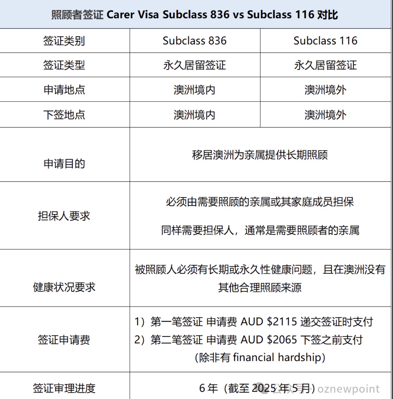 8. 照顾者签证 (Carer Visa)Subclass 836 与 Subclass 116对比