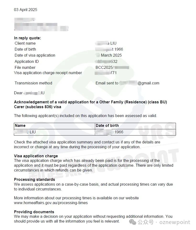 • 签证类别:Carer Visa(照顾者签证)子类836 与子类116