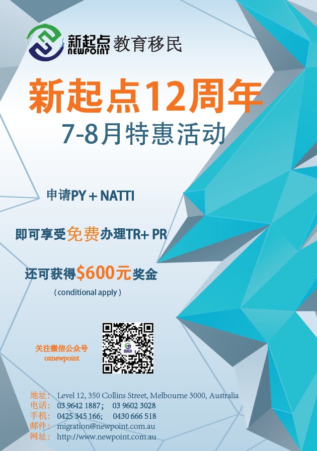 另外,即日起,只要关注新起点微信公众号:oznewpoint 即可到新起点公司领取价值达50澳元的一份礼品。送完为止。